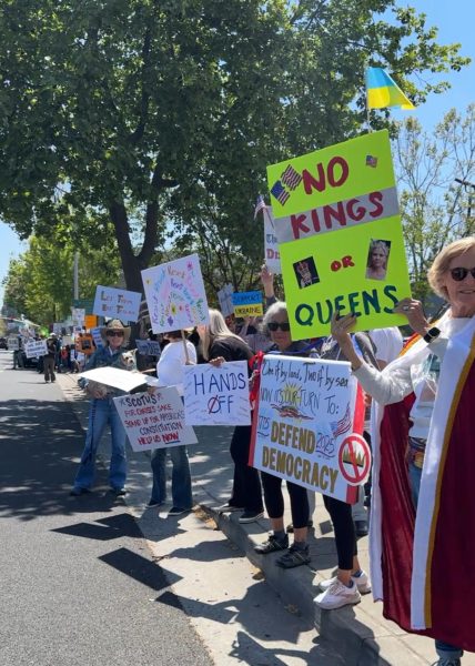 The peaceful protest was hosted by Indivisible Palo Alto plus (IPA+), a diverse, action-oriented community of 379 members that aims to defend democracy in the Peninsula and stand against authoritarianism, according to its website. IPA+ promotes activism through connection, where “fun, joy and laughter are essential.”